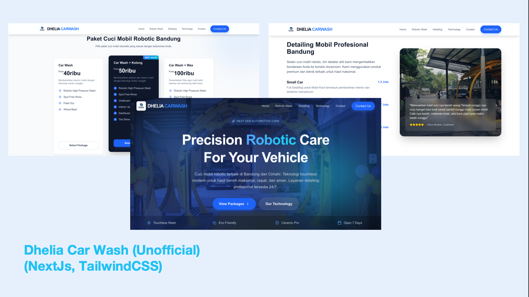 A demo landing page specifically designed for a car wash company in Bandung & Cimahi, Dhelia Car Wash
